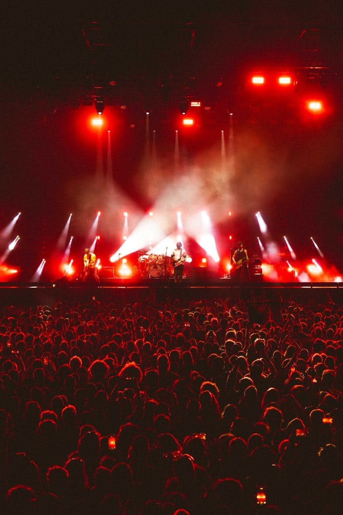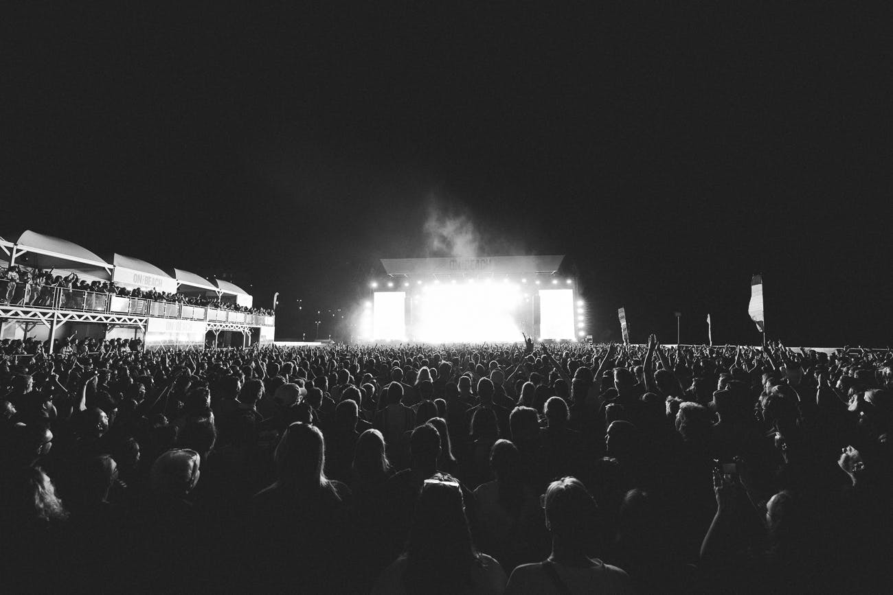 Lone single ‘One More Chance’ felt purpose-built for the crowd – a pebbled beach preventing any real carnage down the front, and an adequately intoxicated crowd of millennials who may have made the move down from London down to Brighton in the name of partying. ‘The Love Within’ from Hymns, released in 2016, and ‘Blue’ from the band’s last EP make surprise, but welcomed appearances, for any lovebirds in the crowd. The first act is then ends how it started, with two songs off the debut album, and one from A Weekend In The City – ‘Positive Tension’, ‘The Prayer’ and ‘Like Eating Glass’. Jumping around to those on stones seemed to be a unique gig experience.