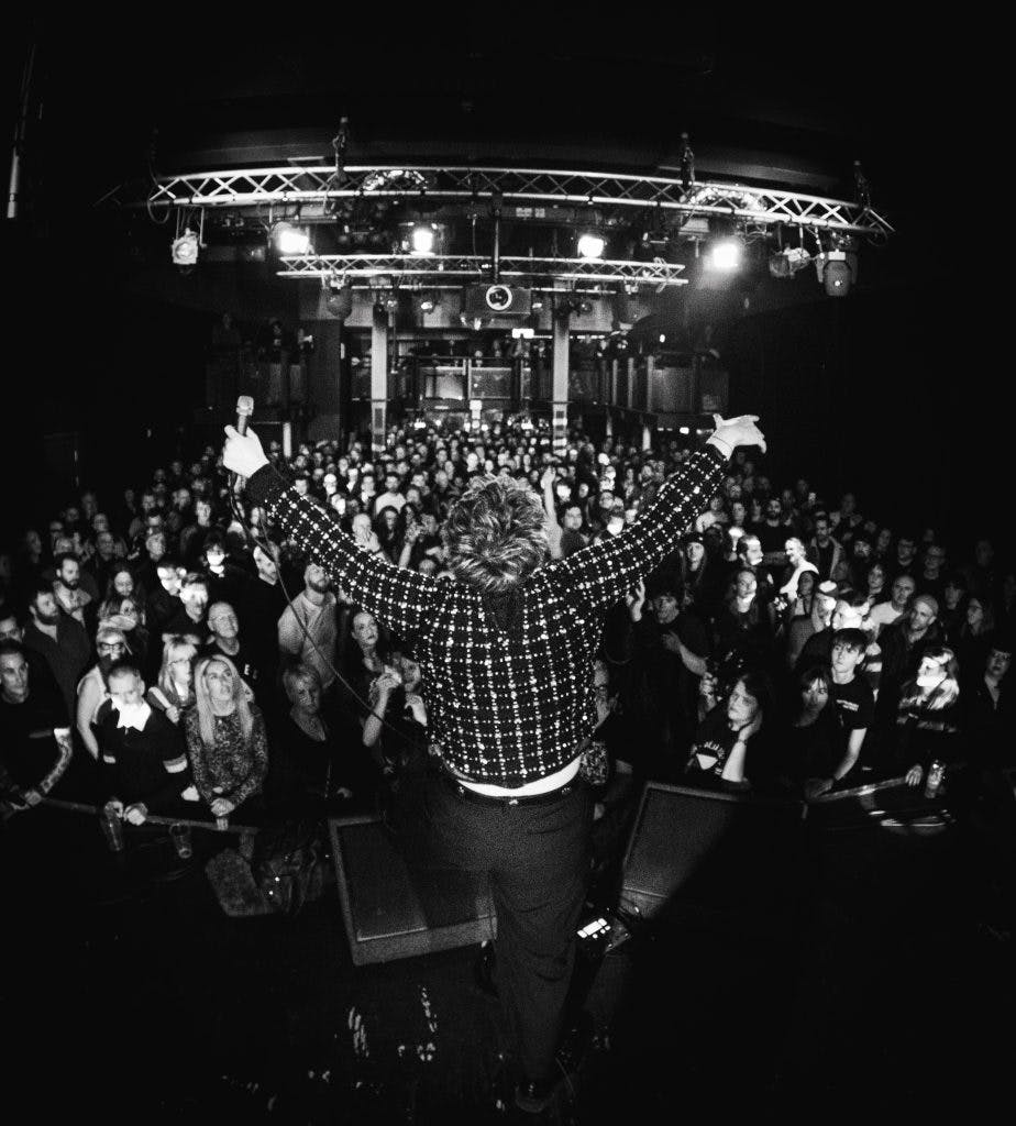 As each song passes, frontman Ross Cullen shifts further into gear. Dressed in a bedazzled top and sunglasses, his performance grows stronger as the night goes on, effortlessly switching from spoken word to screams. Songs such as ‘Them’ and ‘Asking’ perfectly lean into his theatrics, parading around the stage as though possessed by his own writing. He’s an incredibly strong frontman, a necessary anchor for their act.