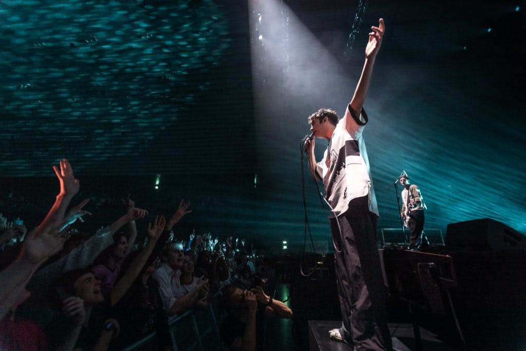 The setlist was a well-crafted blend for fans of every era. Big brought that raw, early Dublin punk energy, immediately reminding fans of the band’s roots. Televised Mind with its signature flashing lights, familiarised the crowd of the hectic A Hero’s Death era. Then came the ever-so-cinematic Roman Holiday, but still, it was the tracks from their latest album, Romance, that truly stole the spotlight. Despite being relatively new to the live circuit, every track was a fan favourite. In particular, Here’s The Thing’s scratchy guitar tones cut through the mix in a striking manner, meanwhile Death Kink’s explosive nature presents Chatten at his most animated. It’s another chance to prove why the frontman is so well known for his emphatic, ranting delivery, as he spits the lyrics at the audience, the songwriting’s emotions fresh in his mind as if he wrote it yesterday. The moody and entrancing Bug also provides another chance for a singalong, which the crowd need no further invitation for.